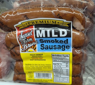 - 1 lb Sunset Farm Mild Smoked Sausage, sliced